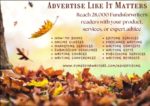 Please forward the newsletter in its entirety. To reprint any editorials, contact hope@fundsforwriters.com for permission. Do not assume that acknowledgements listed in your publication is considered a valid right to publish out of ours.