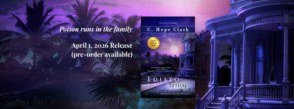 Great Novel Retreat, Bar Harbor, Maine - Hope as author-in-residence -July 25, 2026 - Smoking Guns Sisters in Crime Zoom meeting - Noon - Zoom -October 27-28, 2026 - SC Library Conference, Columbia Convention Ctr - lunch speaker -November 15-21, 2026 - Edisto Beach, signings TBD